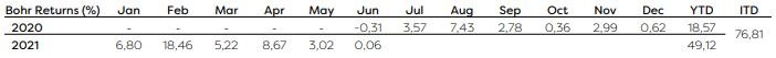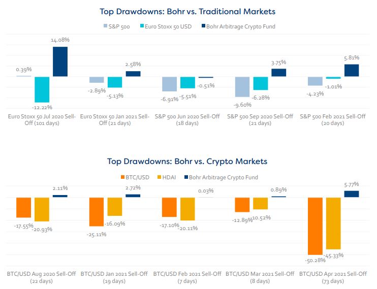 In its first thirteen months, the Bohr Arbitrage Crypto Fund has returned 76.81%, with a daily Sharpe ratio of 5. Bohr’s returns are uncorrelated to any and all assets. Its performance is strong in up and down markets.